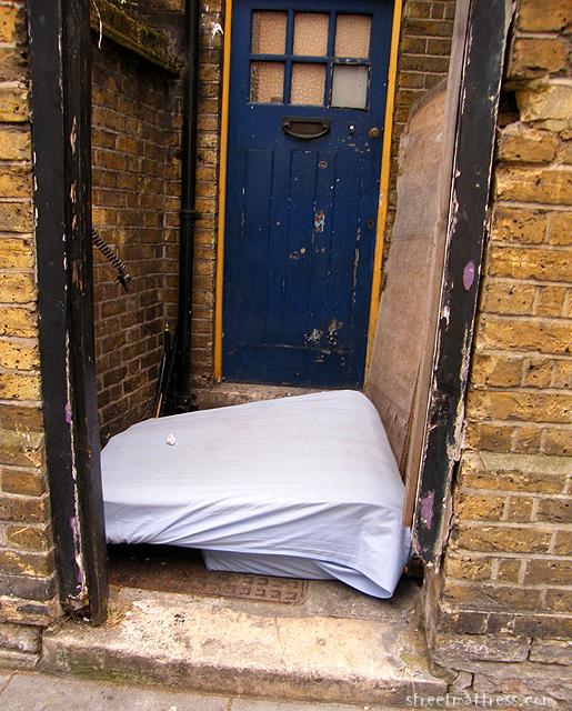 This is the side door of a pub in town. I always expect to see a mattress here, but this was the first time there's been one.