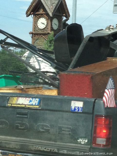 | For the record: the clock tower was not on the back of the truck, it was in the background. |