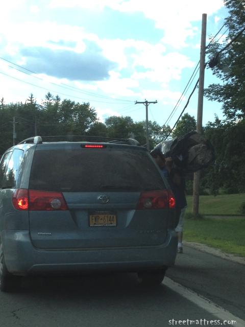 | Couldn't believe it - right before my eyes a man carrying his mattress down the street! |