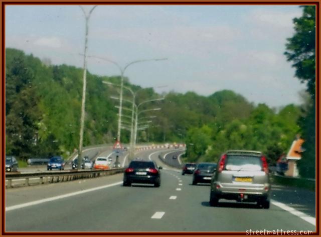 the narrow escape lies in the wall of concrete, as I was not satisfied with the view from the back-side , I passed and try to take the matt, driving, one hand on the wheel, one hand on the phone, both eyes on the car with the matt; we almost crashed into the wall I did not see, a very narrow escape and a lot of yelling from Grace, and I dissatisfied, because the picture failed