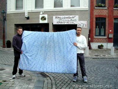 | Happy hour and lucky moment, a mat passing by my office. Two guys working on a saterday. |