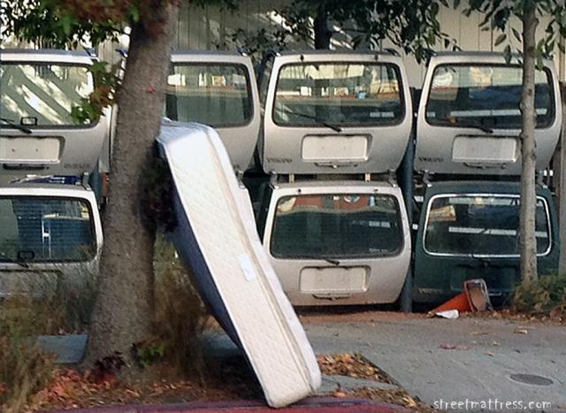 | as i drove by i saw this matt. went back to take a better photo next morning but matt was gone. cool gate made of Volvo tailgates |