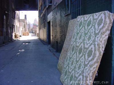 I spotted this sweet, sweet streetmattress a few days ago. When I returned with my camera the next morning, it was still there. Amazingly, the fleas hadn't banded together up and walked away with