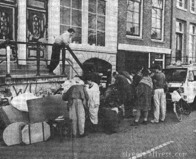 Browsing old items in newspapers, I found perhaps the Adam and Eve of streetmattress in a Dutch newspaper, with an indignant article about trash on the street, people gathering to take whatever they wanted.