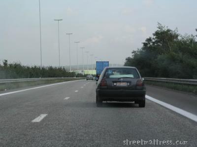 I passed it at 85 Mph and then I had to drive at 60 Mph hoping that she would pass me because she is stil learning to drive, therefor the "L" in the left corner. Adventually, she did.