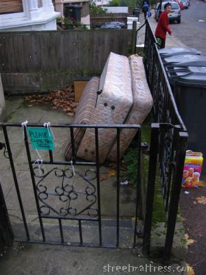 | A matress calling to a lady in red |