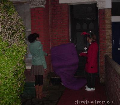 | I spotted this purple mat leaning against the wall and managed to persuade two Xmas passers-by to point for me! ***MANY XMATS!!!*** |