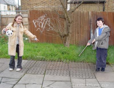 Dan, I wondered who would spot the "halo" effect. I took two pictures at the scene, one with flash and one without. The young chap preferred the way he looked in the former, while his sister favoured her appearance in the latter, so I "flew" him in from the flash photo, thus keeping them both happy. The panda head is an inflatable paper thing from Chinatown that she'd just been given at school.