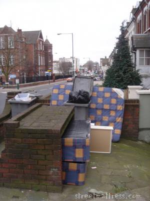 These have got to be be the same ones I photographed later dumped by the pub in Grove Road, Acton. (Rainy Day Mats #12 and 35). So now we know who the fly tippers are.