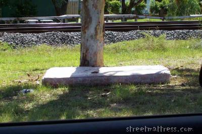 THIS MATTRESS IS UNDER A TREE BUT IS NOT SHADED |