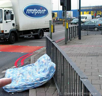 At the IKEA junction on the North Circular was this mattress. Imagine my surprise when a Matpoint truck hove into view just as I was aiming my left index! (Enhanced ntor for wim).
