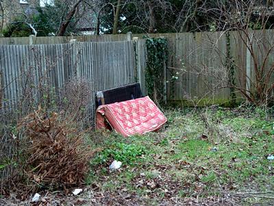 This mat and base were in an untended vacant lot, and had clearly been there a long time, the mat having got tired of standing upright and done the bend.