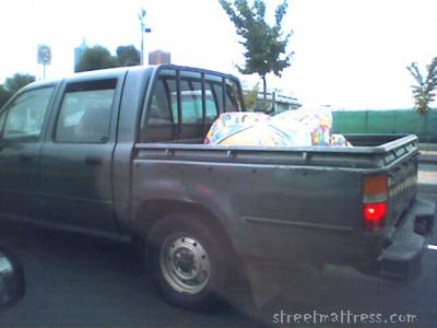 Colourful kiddies matt in a big ute - probably on the way to Moonlight Cinema or somethin.... yeah I know its fuzzy - but I was driving... |