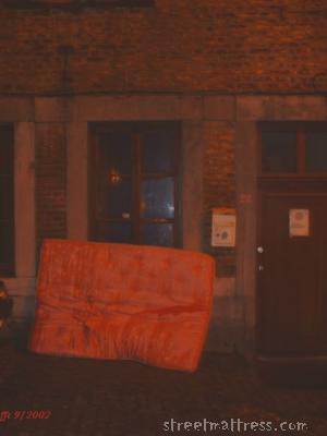 I've seen this mattress around town before. It's a mattress of the night. I'm sure if you had waited long enough you would have seen it's pimp stroll by (a King size mattress covered in Dark Purple satin). I know she looks a bit Tattered but she hasn't got much choice but to sell herself - she has a whole family of scatter cushions at home hungry for stuffing. If I was a mattress who was down and out of luck I guess i'd let people pay to climb on top of me and have there way with my polyester cover!!!