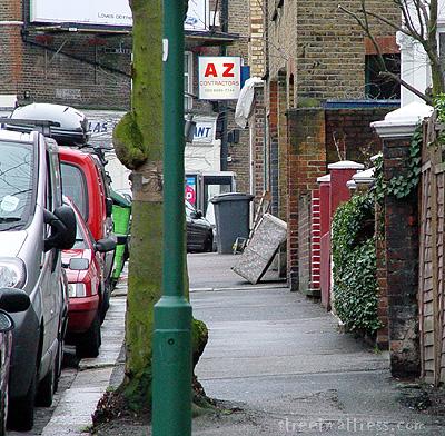 | Looking south from Fortune Gate Road up St Thomas's Road, Harlesden. |