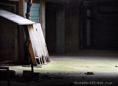 This bedbase was holed up in a disused basement garage area beneath a courtyard surrounded by apartment blocks. I was unable to get in, and I would guess that the basement had been sealed off to prevent its use by drug dealers. It was quite desolate, and scattered with supermarket shopping trolleys, oil drums and beer cans. The light was coming in through a big vent that was open to the sky.