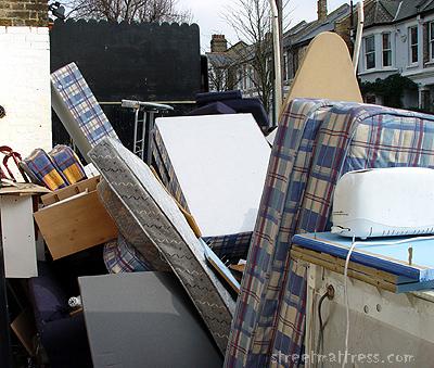 This is the biggest pile I've encountered in a street situation. A fine assortment containing at least seven matts and four bases. |