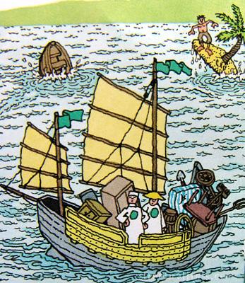 | Also spotted by my son in a "Where's Wally?" book. The Chinese junk is filled with junk. |