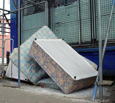 The mattress's tag partner had just been thrown and was actually flying through the air as I took the pic. The ref was an old striped matt, but he was being given a kicking by an old lady.