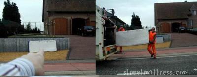 This shows the amazing luck we need in Belgium to take pictures of a matt. I saw the thing, unintersting but still, pulled over, pinted and took the picture.The moment I wanted to continue, this truck comes along, two hijackers jump from the standingplats on the back, and hop, one matt gone to eternity. One second later, no met te be seen.