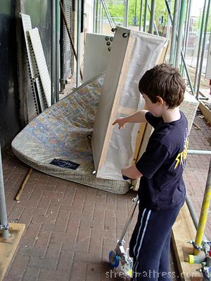 Jonge heer, is dat de MATRAS van uit jouw bedde? Of van broer of zus? Gelukkig dat ik niet weet wonen, anders kwan ik je MATRAS van MOUSSE heel stuk scheuren. En van je broes en je zussen ook, en die van je ouders hahahahaha.