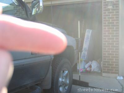 Nothing special here, just me cruising to the grocery store and catching this fella poking out of someone's garage |