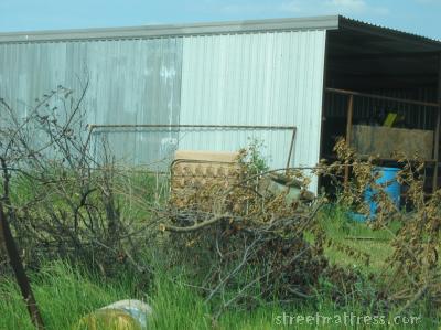 I just made the drive again this last weekend (for a little poker game) and saw the same mattress out in the same spot. I don't think it'll ever get invited inside.