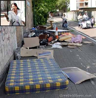 I've added the inset to prove that the woman wasn't making a vulgar gesture at me. I think she is saying, "Smart Set, can't you use your influence to get this rubbish removed?"