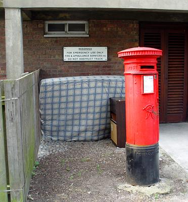 My attention was drawn by this mattress to the presumably original Victorian pillarbox incongruously located here on the '60s-built South Acton Estate. I wonder if this was its original location?
