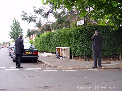 I don't know what was going on here. The men, both on the phone, ("We have a situation here...") were with the Mercedes limo. Were they alerting the government? Interpol? The DRIU? Psychobabble?