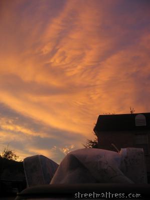This is the prelude to the "After the Storm" I submitted last month. It was only taken five minutes before the other one, and it is of the same mattresses, but I had to submit it anyways. Not everyday that you see cotton candy clouds