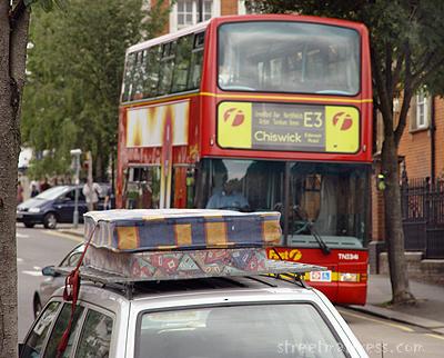 Well, yes, because the bus is going to Chiswick, which is mostly posh, and the matts' ride is facing towards Acton town centre, which is not posh, really.
