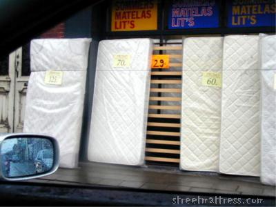 | Several shops on the same road, same rainy day, only one queer fellow, but then the base does not get wet allover |