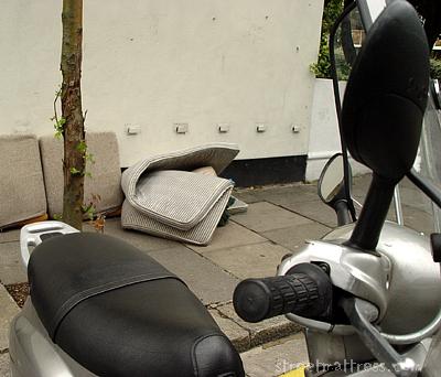 | Thin Mattress with Scooter - 07.26.05 |  | submitter: | Smart Set |  | location: | Shepherd's Bush, London |  | Been finding quite a few thin matts recently. Being floppy, they form interesting drape-shapes. |  | category: | Seen Worse |  | comments: | 2 |  |