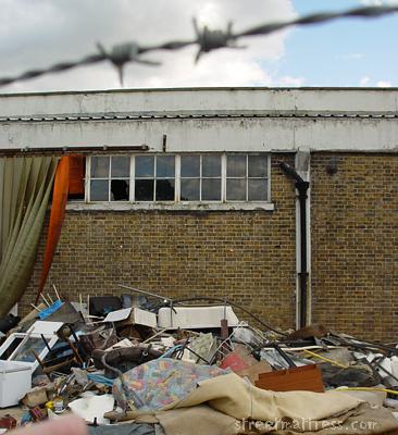 This was at an abandoned factory. You can just see my finger creeping in, but you couldn't see the colourful mattress too well unless I cropped the picture.