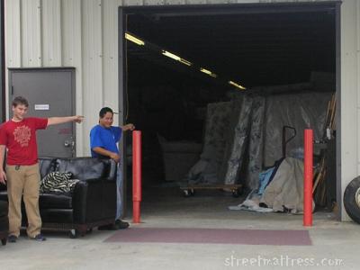| On the way out from the trade in pile at the furniture store, these two were unloading a truck so I got them to point at the new ones inside. |