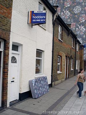 Directly across the street from the previous matt and base was this one. The women thoughtfully walked out of shot, when I actually wanted them in it, so to add interest I replaced the white sky with a close-up of the pattern (dodgy colour matching!). The label said: Highgate Beds. Comfort at an affordable price. Starter Collection. And the matt was called "Devon".