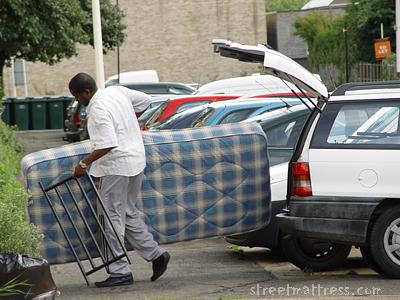 I had gone to collect my daughter from a party, but she asked to stay a while longer, so I said OK and strolled off to look for matts. Round the very next corner I saw this guy just about to unload a mattress. Whipped out the camera and just got it in time.