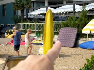 | Makes you wonder why people go to see the sea. It is Rebecca's inflated sister (#10303), with a nice suntan. A suntan of swing. |