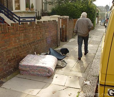 I'd just got out of my car when SBB came along and said, "You need to buy a new Merc or change the f*ckin' number plate!" I tried to reason with him, but he made only partial sense, and pretty soon he was on his way (see pic). A minute later I saw him round the corner talking to a truck driver who was sitting in his cab staring straight ahead while SBB nattered on oblivious.