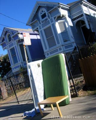 dark green sheets hide stains, thay probaly just forgot to remove, nice three legged table...