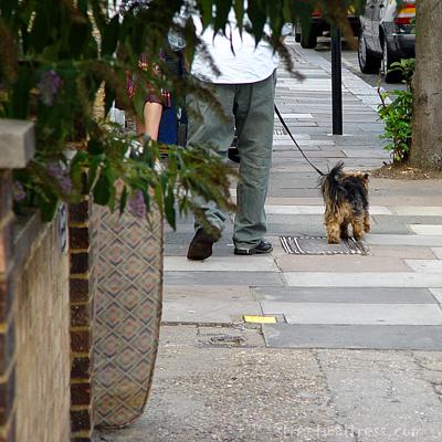 I have other shots where you can see the entire mattress, but I prefer this quirky angle. The dog's owner was a friendly, cheery old chap, despite having having just the one tooth ("Old Chomper") and a very prominent "outy" belly button.