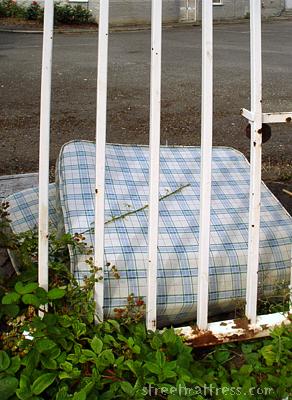 | A stone's throw from the municipal dump was this mattress, probably hurled over the gate into this office car park when the dump was closed. |