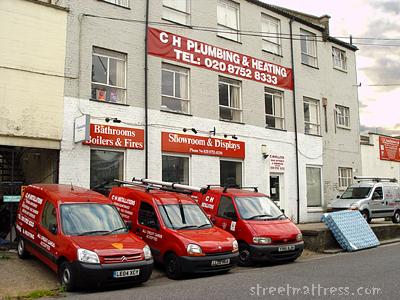 My kindly neighbour told me of these mattresses, so I leapt onto my son's new bike, whizzed off to snap them and was back home before you could say "Bathrooms, Boilers and Fires". It beats walking any day.