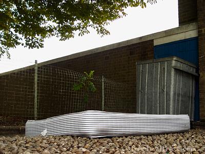There was a crow sitting on the wall, but it flew off before I could get the shot. I had other angles with it in, perching on the bin, but I preferred this low, no-crow POV.
