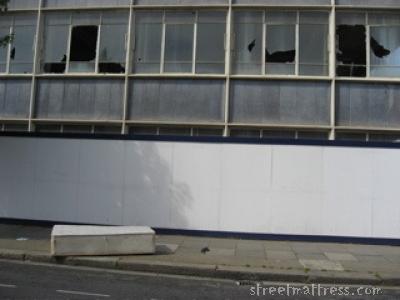 | I took this picture a few months back. The matt was there for weeks. Now everything's gone: not just the matt, but the building too. |
