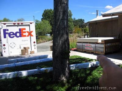 | stopped for a break at the Gaiam 'Real Goods' facility. Saw this matt on top to protect a pile of glass sheets. |