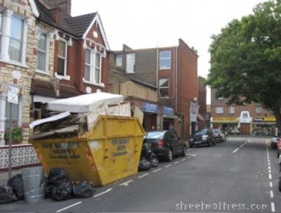 | I once lived in the building over E.L.M. Motors. You can see the three back windows of the apartment, and the fencing around the roof terrace. |