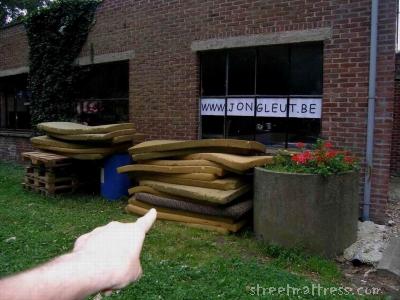 I was walking Maud in her Buggy last sunday, by the lane of lime-trees, when I saw this bundle of matts with a lot of children around (no camera at hand), returned but then the children were gone, but along came nostalgia. The place used to be the shop of the local blacksmith when I was a kid, and when I was in my late teens is was a "dancing" by the name "the horses neck". I used to be DJ in it for a while, before becoming in a DJ in Stokkem at Pier van de bar, a place by he name "the old barn". We even had Siska Vera and her band Shocking Blue live in it. As I recall same year as Desmond Dekker and some guy with a very deep voice, "you put a spell on me" and John Mayall and boy that was a long time ago, anyway, that is what is in the pictur, all but One undressed mattresses