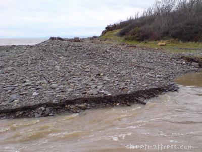 | After a night of heavy rain the stream was more like a river. I only had my phone with me to take this distant shot of a part eaten foamy. |